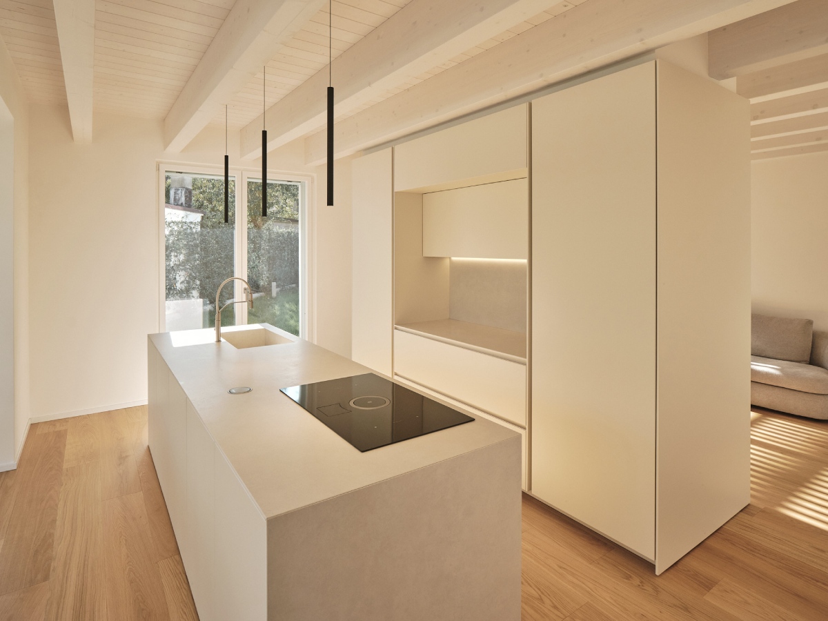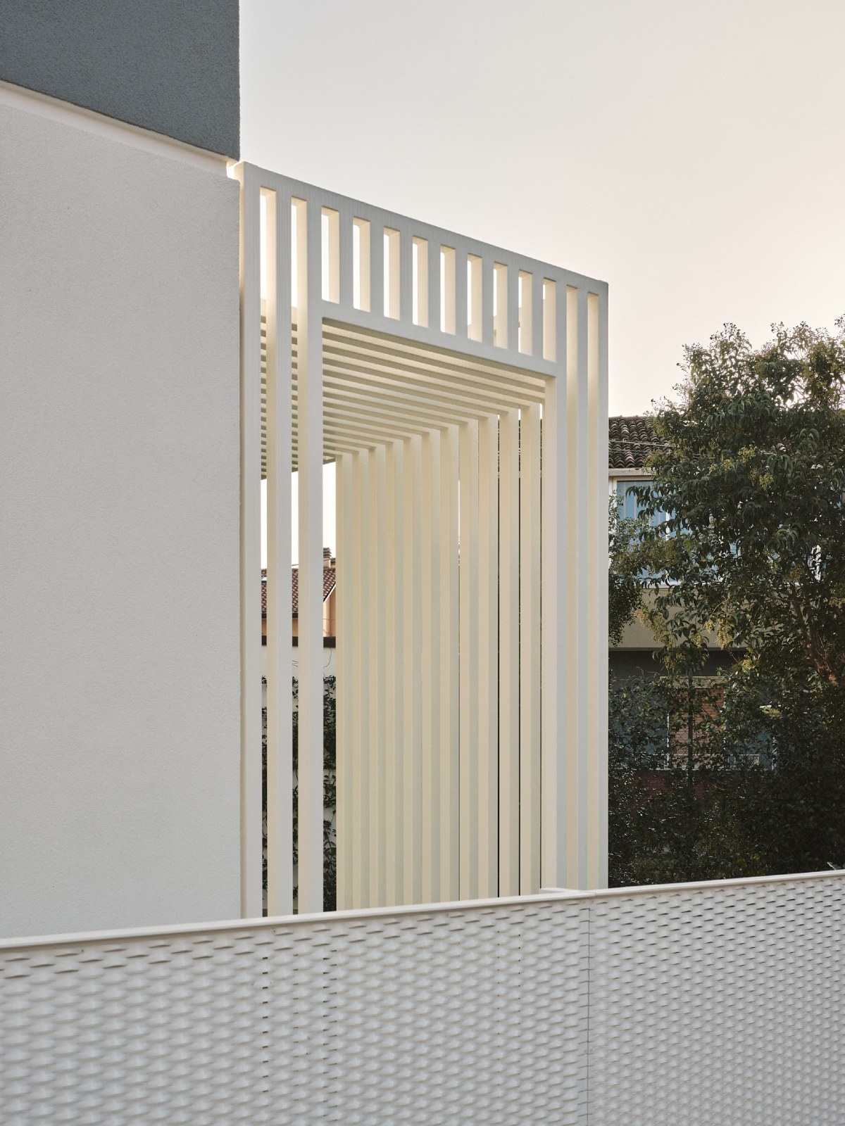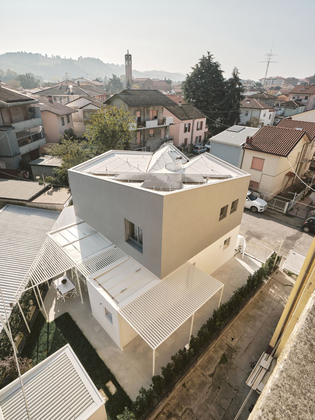 Volevamo cercare di conferire leggerezza ad una piccola residenza che per motivi urbanistici doveva avere una forma molto compatta, pertanto abbiamo preso ispirazione dalla forma di un ventaglio per la progettazione della copertura.