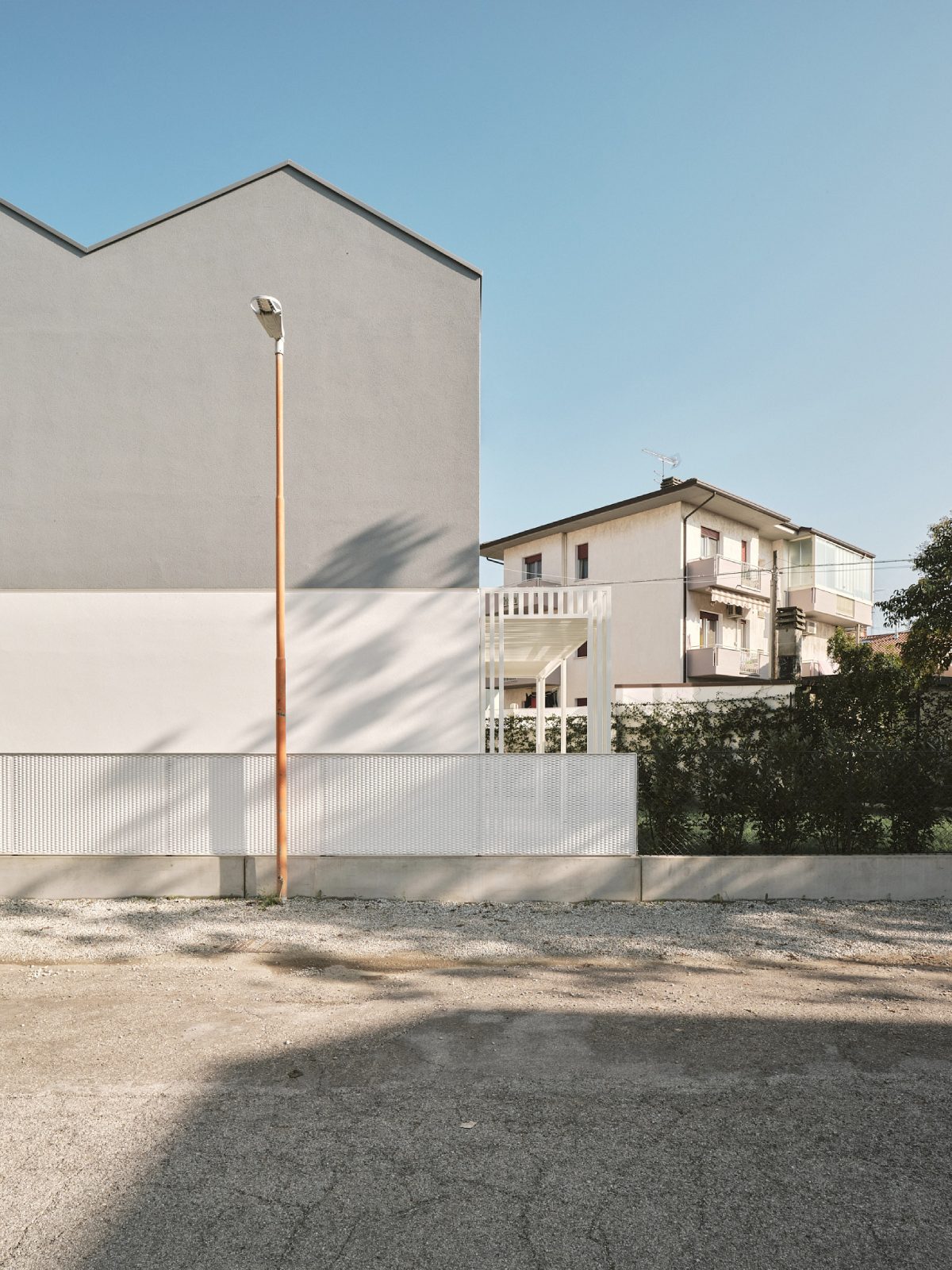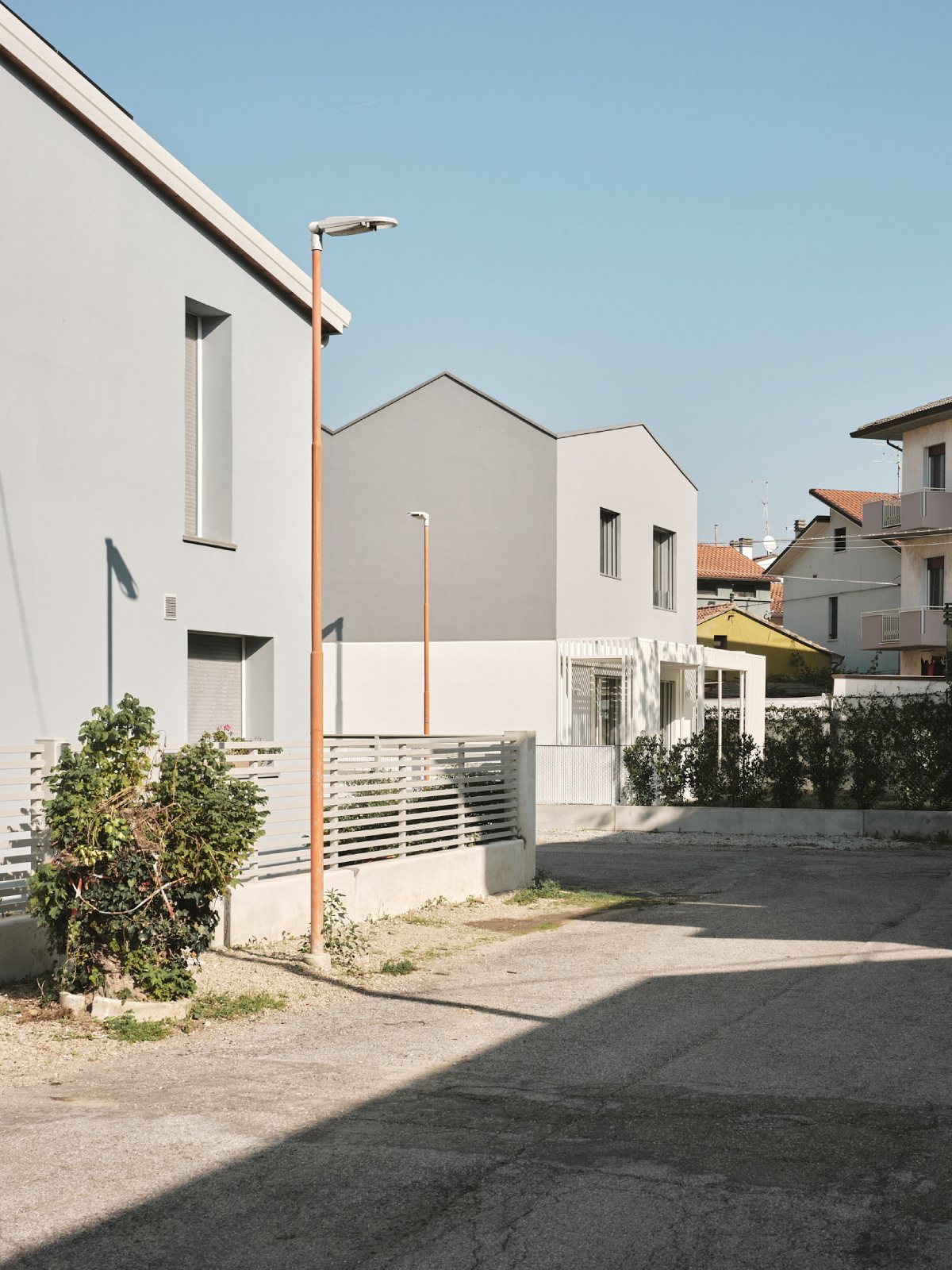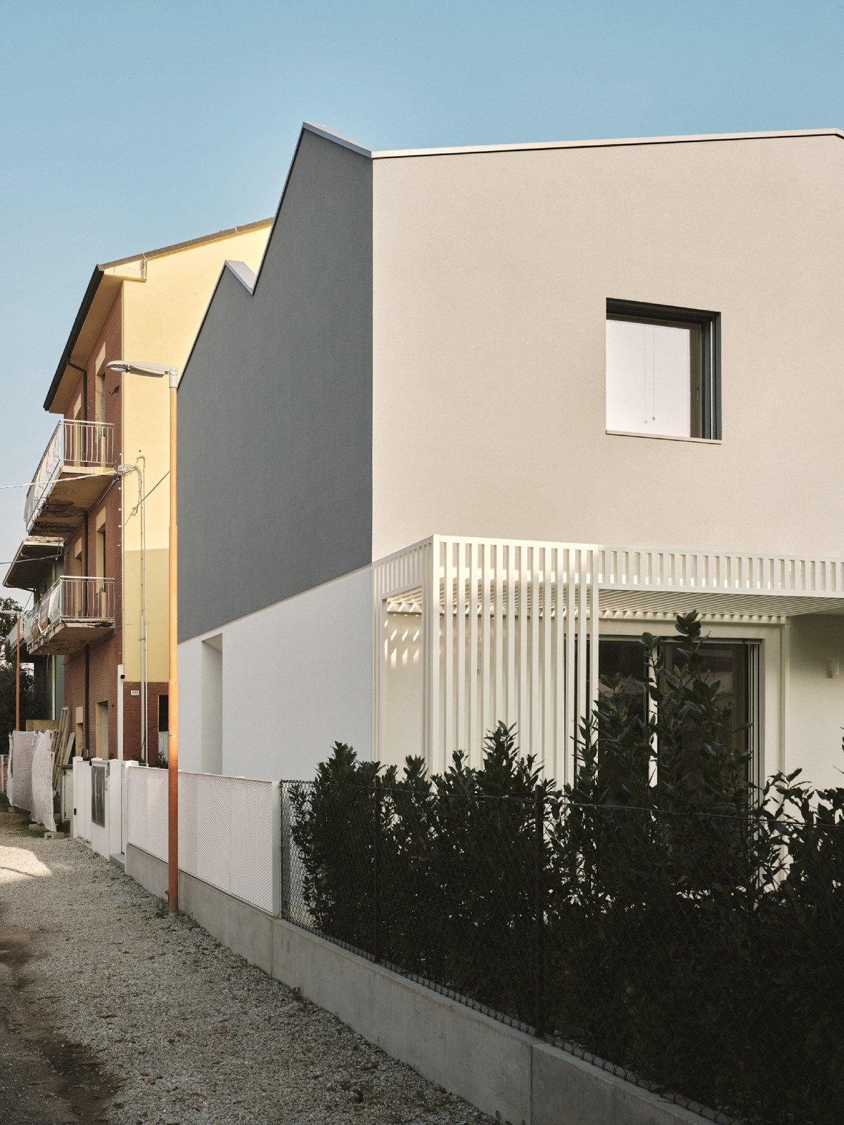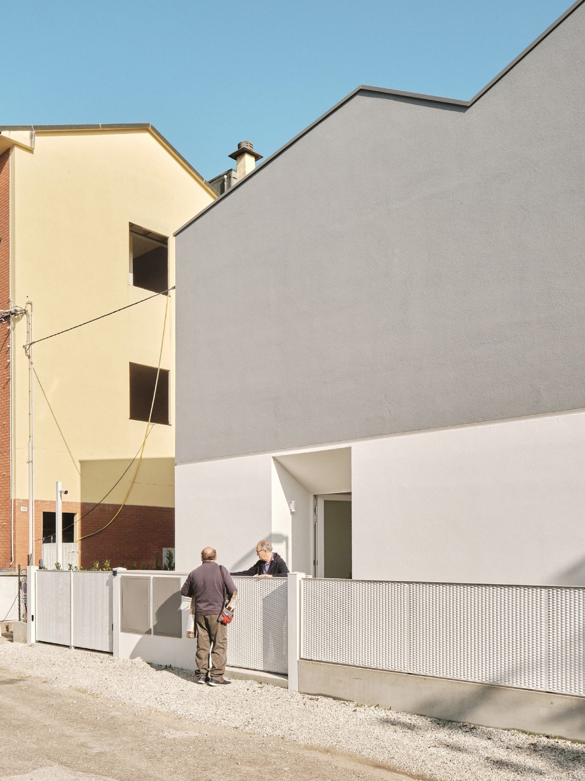Il fronte strada ha un forte carattere introspettivo al fine di prediligere le viste sul giardino interno dove si svolgerà la vita familiare. Grandi aperture si apriranno, infatti, sui fronti interni affacciati al giardino.