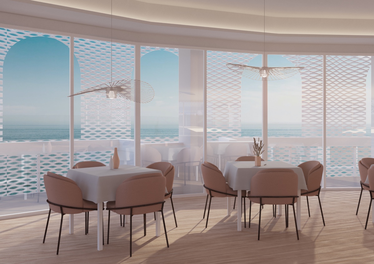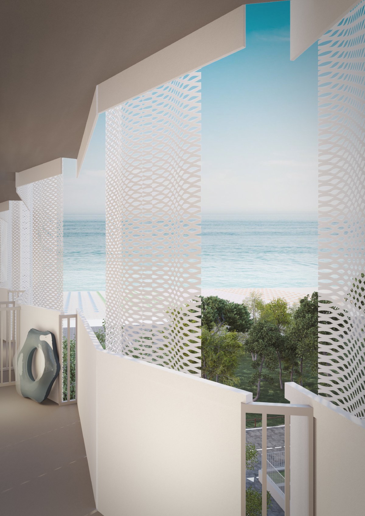 La scelta del Liberty come linguaggio progettuale trova piena giustificazione nel contesto riminese. La città, il cui sviluppo turistico moderno coincise con l’ascesa della borghesia negli anni Venti, conserva nel Liberty una delle sue espressioni più autentiche, visibile tanto nell’architettura quanto nel cinema felliniano e nell’eleganza degli abiti d’epoca. Se il Grand Hotel della città rimane l’emblema di questo linguaggio, il progetto di restyling dell’hotel oggetto di intervento ne offre una rilettura contemporanea: le facciate, con il loro ritmo sinuoso e la texture vibrante, diventano un filtro dinamico tra tradizione e modernità.