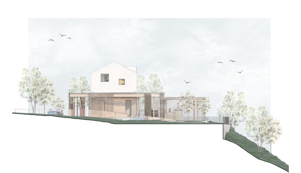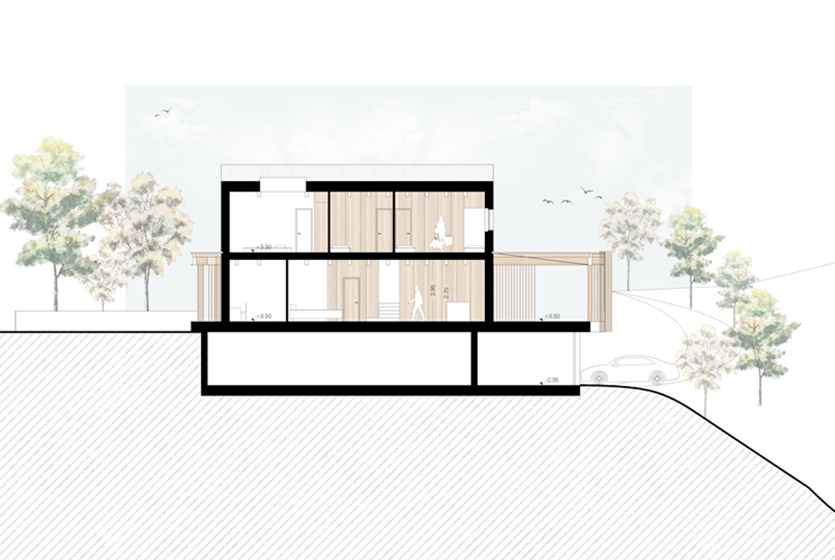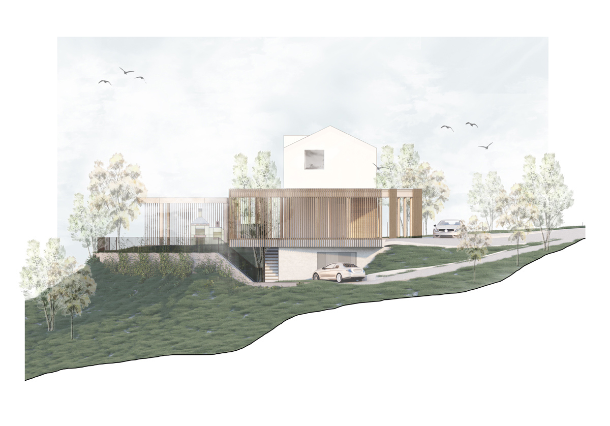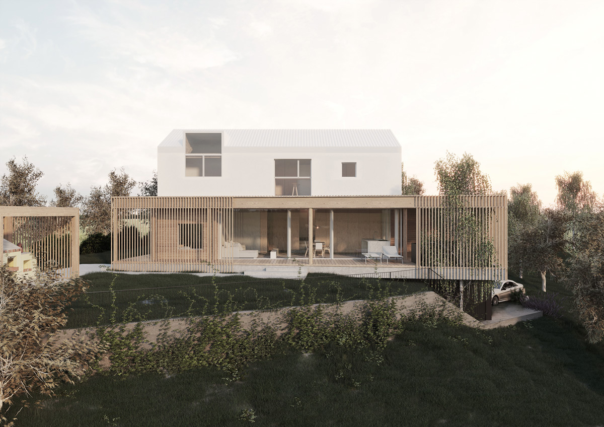 Il progetto prevede la demolizione con ricostruzione di un fabbricato residenziale situato nel Comune di Dozza, in una posizione di crinale completamente aperto verso le colline.